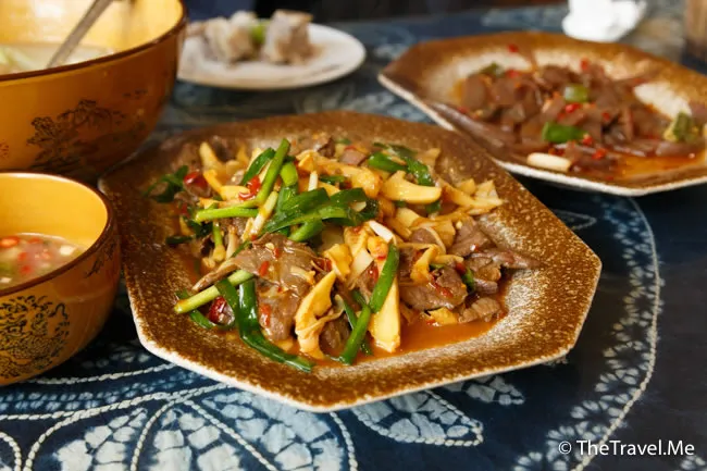 老闆是個彝族女人,非常友善,向三人建議了幾道撚手小菜。