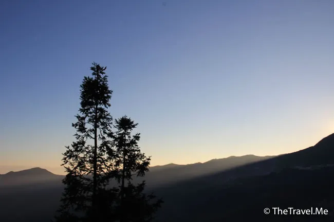 第二朝,粗眉仔六點半左右就起床了,豬豬早就講明不會看日出。粗眉仔只好自己一個出去,先上客棧的天台望望,今日的天氣太好了,完全沒有雲霧,景色反不如昨日。
