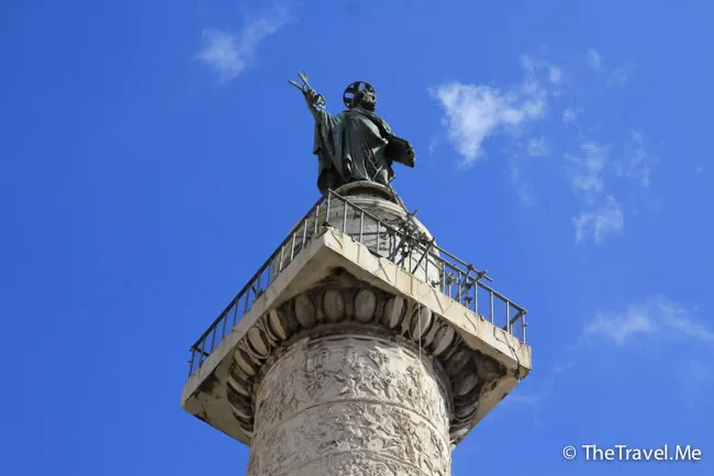 圖拉真柱(拉丁語:COLVMNA·TRAIANI)為羅馬帝國皇帝圖拉真所立,以紀念圖拉真勝利征服達西亞,於113年落成。柱身上有精美浮雕,聞名於世,但可惜隔得太遠,看得不太清楚。