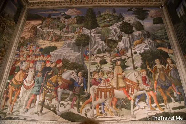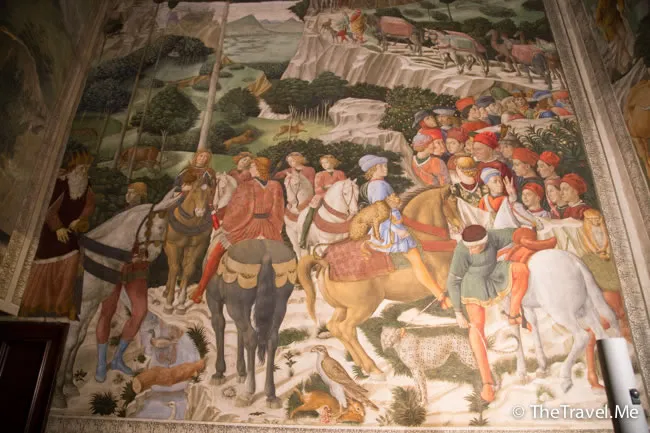 小聖堂的三面牆壁都覆蓋着《東方三賢士的伯利恆之旅》這幅連環壁畫,壁畫係由文藝復興大師戈佐利(意大利語:Benozzo Gozzoli)於公元1459至1461年繪畫,畫中人物用了當時翡冷翠的統治者麥地奇家族成員的形像。