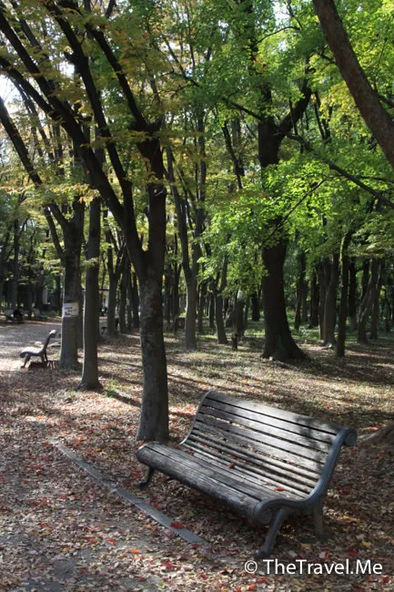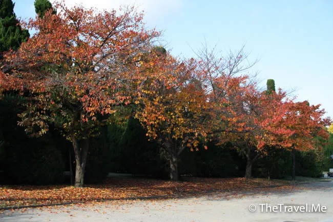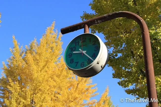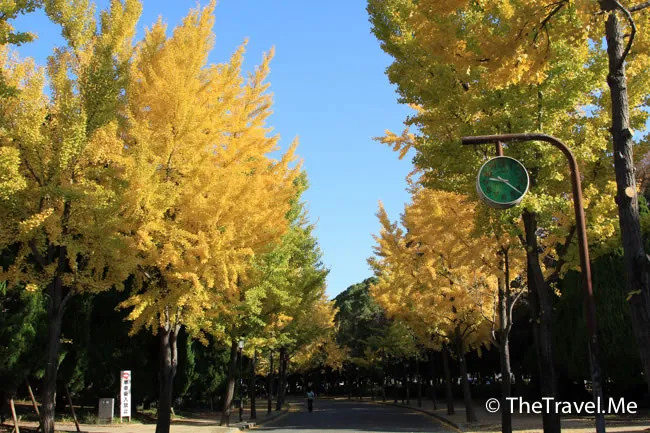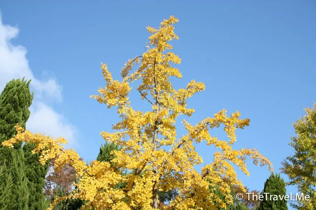 大道的盡頭有條叉路,叉路夾道植有銀杏樹,在陽光照耀下金光燦爛,非常漂亮。