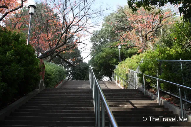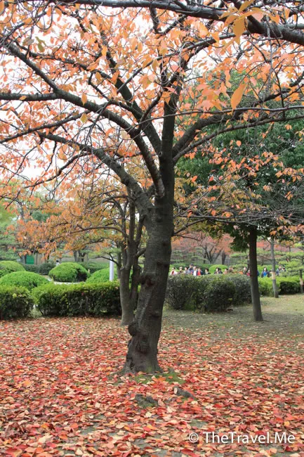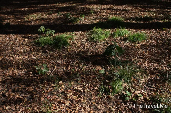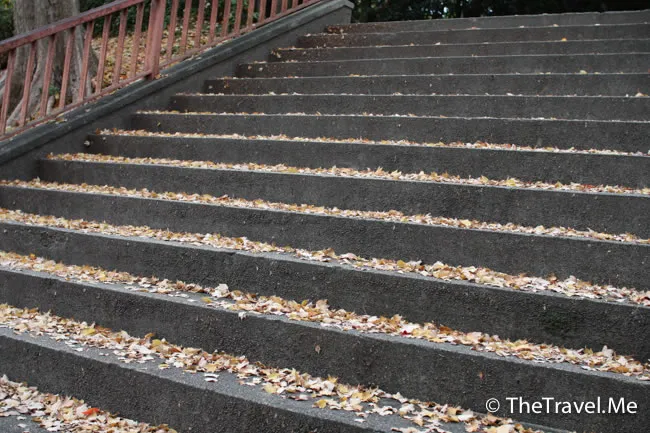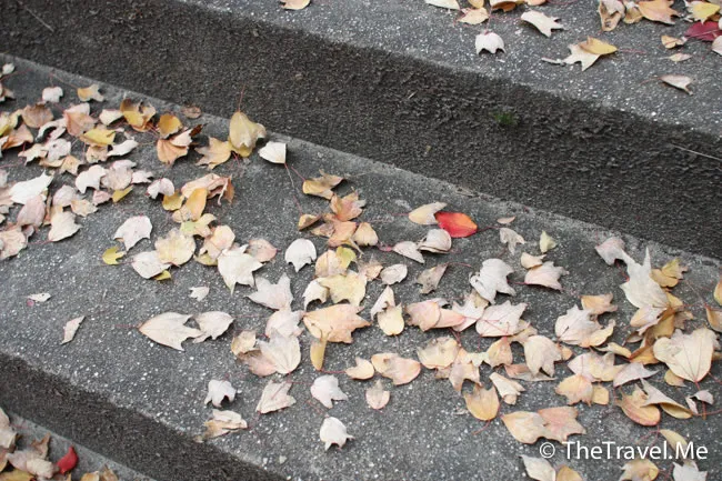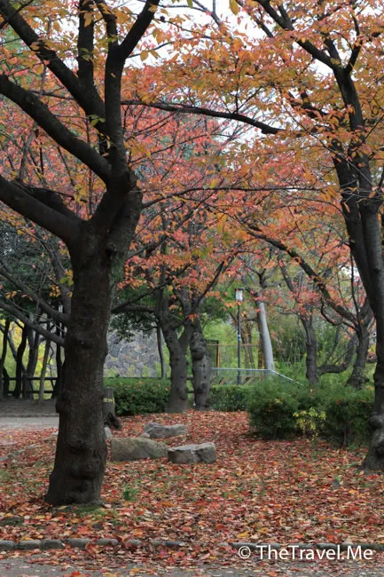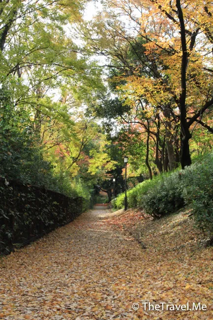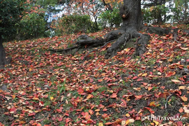 城濠附近的小山坡卻別有另一番味道,地面上無處不是落葉,仿如鍍上一層粉紫色,彷彿秋色滿瀉了。