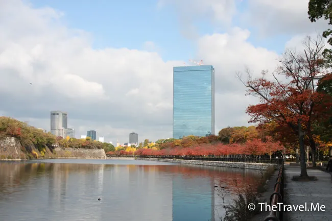 出了小森林,便是大阪城城濠(護成河)。四周通共只有一幢高廈,沒有屏風樓,豁然開朗。