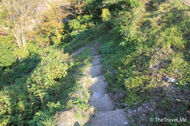 觀景台旁邊有條不起眼的小路,可通往山下的合掌造集落。