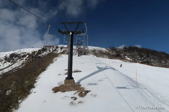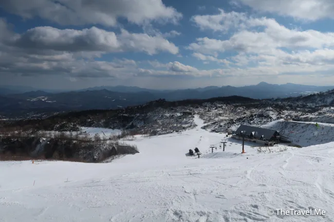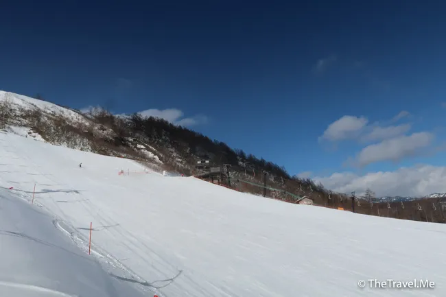 山頂有一條中級滑雪道,是整個草津滑雪場難道最高的部份,但粗眉仔覺得不算太鈄,稍為專心就可以順利落到去。