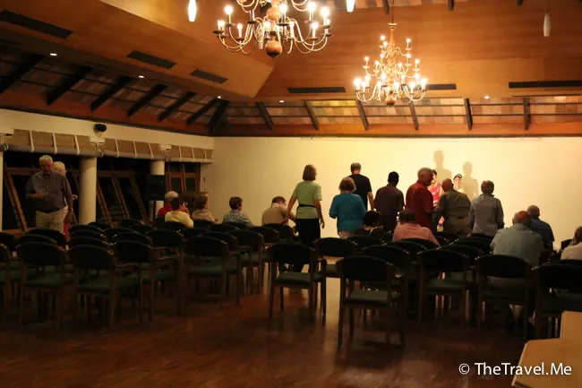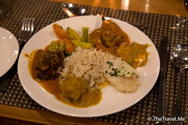 表演完畢,觀眾便去餐廳吃晚餐。晚餐是自助餐,粗眉仔鬆一口氣,起碼吃多吃少都可以自己控制,不會浪費食物。