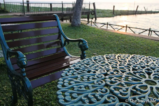 酒店的花園有個漂亮的池塘,滿滿的圈養著浮萍,綻放著紫色的花,令人又愛又恨。