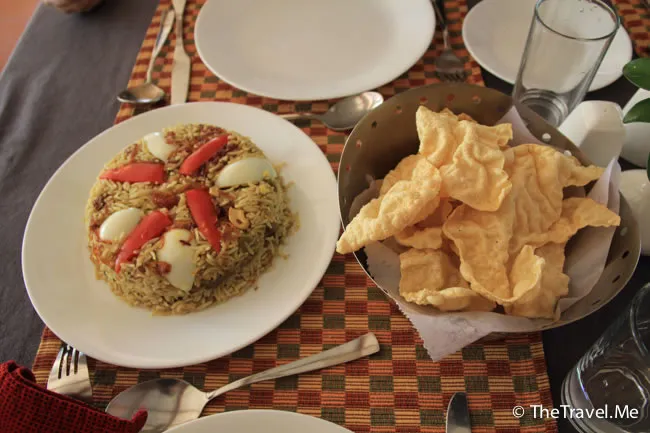 飯因為加了辣椒和胡椒同煮,所以頗辣,侍應提醒,如果覺得辣的話,可以食乳酪中和辣感,非常有效。