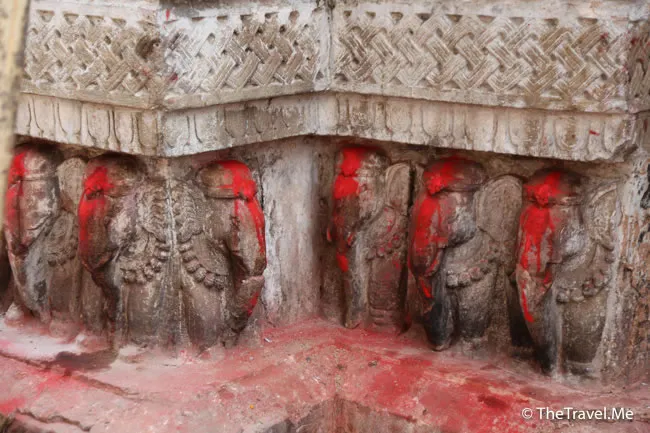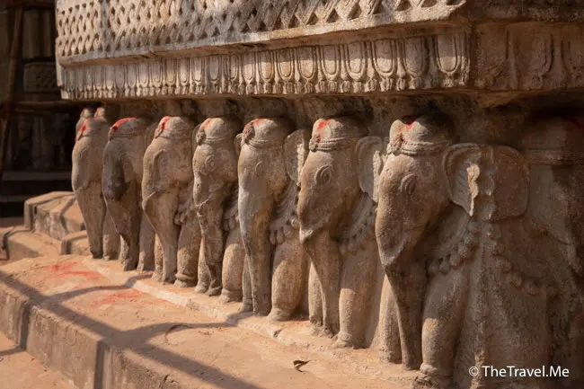 廟基下的象隊雕塑,是典型的阿薩姆藝術風格,非常有特色。
