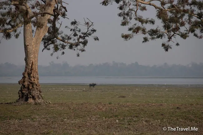 想不到才進入公園的範圍沒多久,就看見阿薩姆邦的招牌動物了……