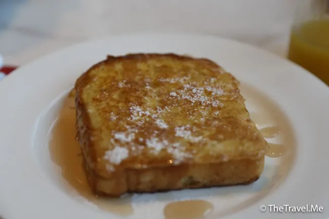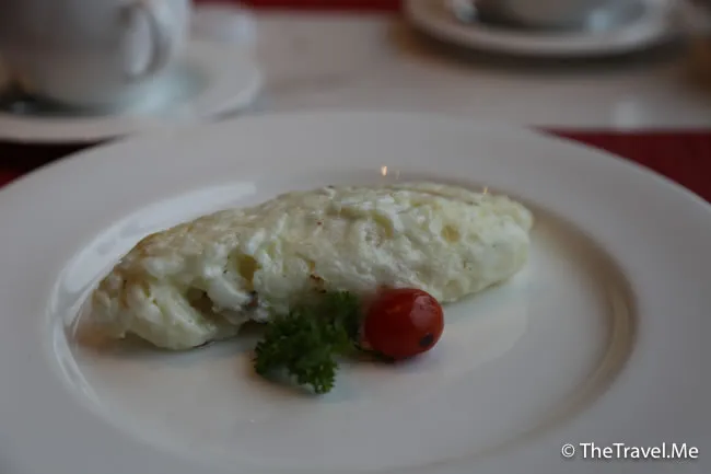 早餐是自助餐,但可以點煎蛋、炒蛋、奄列和西多士,粗眉仔點了西多士,蛋漿不厚但煎得十分可口。