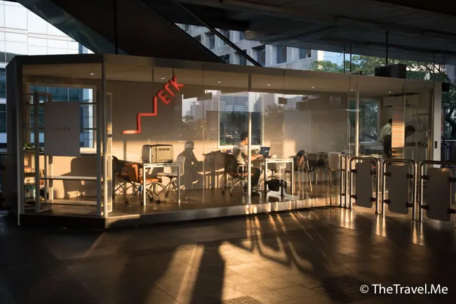 食飽飽之後,兩人又出去行街街。這時候粗眉仔才留意到BTS站有些只有幾張檯和幾張椅子的「吉」舖,再看清楚,原來這些都是流動辦公室來的,方便資金不足但係又想創業的年輕人,香港人經常以為泰國好落後,但人家已經悄悄地追上來了……