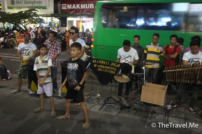 街頭樂隊全是少年,他們用的是爪哇傳統的竹樂器。奏的卻是現代流行樂。