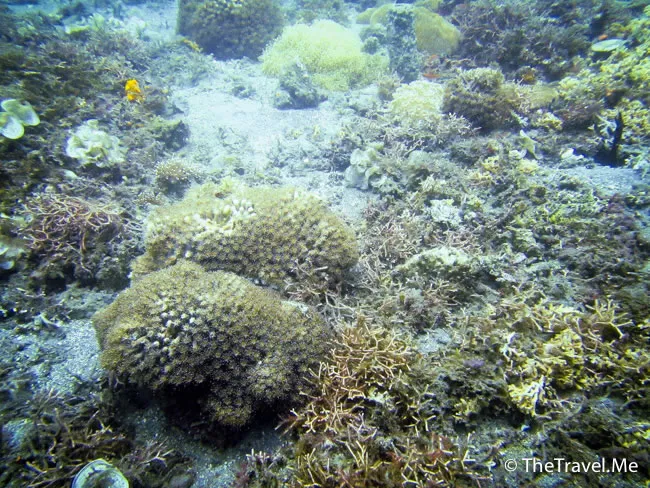 這兒有幾朵軟珊瑚,魚兒都聚集到這裏來,熱鬧而有生氣。
