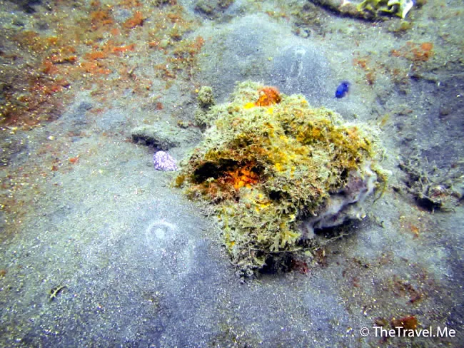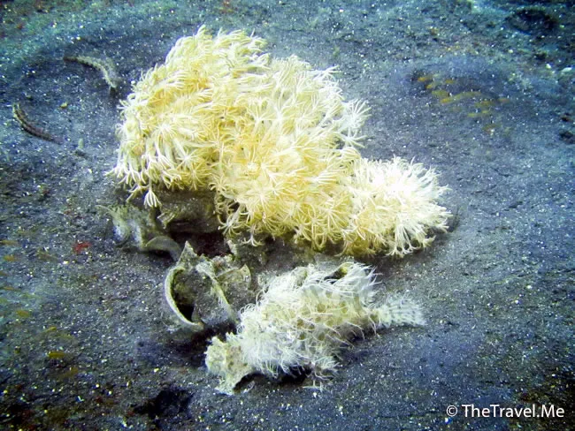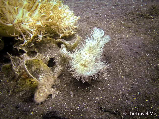 原來這海草一樣的東西是另一種長毛躄魚(Hairy Frogfish),今次見到一大一小,像兩棵海葵,這算是稀奇的生物,粗眉仔是走運了。