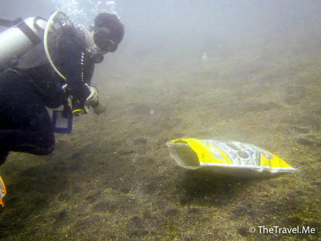 遺憾的是,海底下有不少垃圾,粗眉仔真想通通帶走。