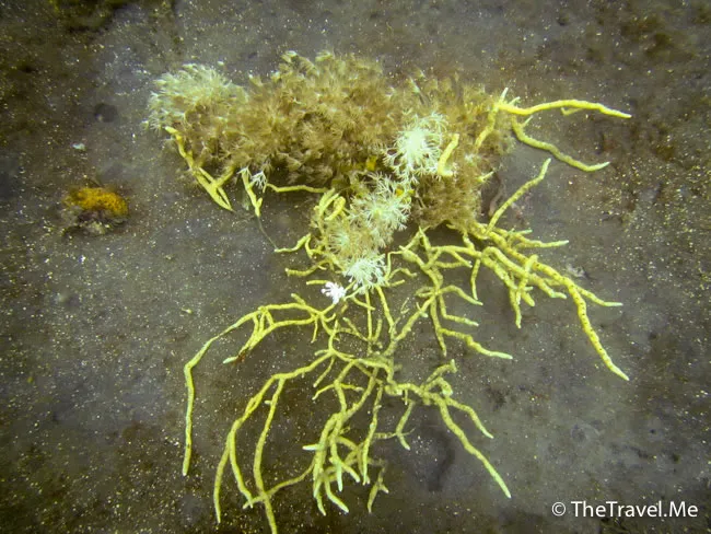 水底下也不儘是一片荒蕪,偶然也會看見一些水底植物,例如這棵就是黃得漂亮,而且粗眉仔從未見過。