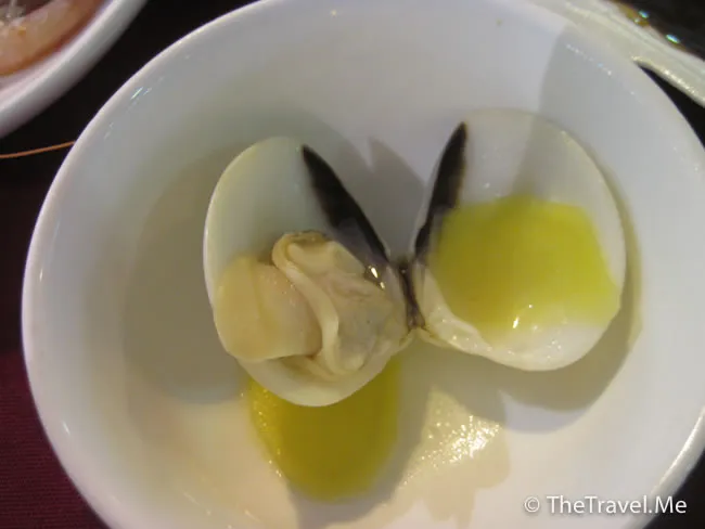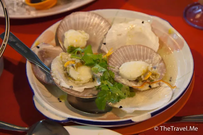 蒜蓉粉絲蒸扇貝(唔記得幾多錢,但不貴),粗眉仔點了六隻。扇貝不算太大隻,但肉質比香港的鮮甜且厚實。