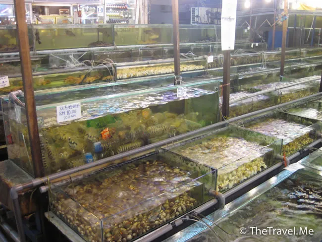 跟香港的海鮮酒家差不多,都是先到外面的「金魚缸」揀海鮮。