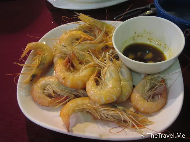 白灼海蝦。海蝦比香港的大隻得多,但味道鮮甜且肉質爽口彈牙,不點豉油亦一樣好味。