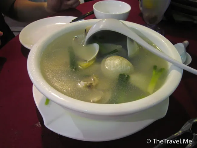 粗眉仔點了魚膘湯,這味魚膘湯頗似香港的魚肚羹,由於係用鮮魚膘泡製,魚味特別濃郁,甚得粗眉仔歡心。