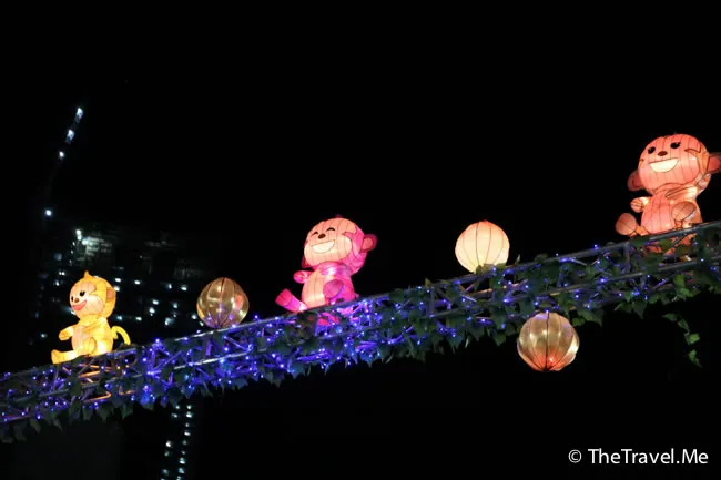 現在還是農曆新年期間,所以牛車水有很多馬騮仔燈籠,但是馬騮仔的造型有點兒奇怪,粗眉仔覺得像天線得得B。